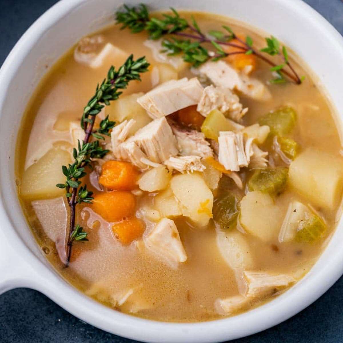Switch out the noodles for potatoes in your favorite chicken soup. This healthy & easy chicken and potato soup can be made with just one pot.