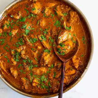 - To make the sauce, add flour and garlic to the potatoes and cook for 2 more minutes. Turn heat to low and slowly whisk in chicken broth followed by paprika, cumin, oregano, salt and pepper. Bring to a boil then reduce to a simmer, stirring often, until sauce has thickened and potatoes are cooked through, approximately 5-7 minutes. If sauce thickens before potatoes are completely tender, stir in additional chicken broth.
