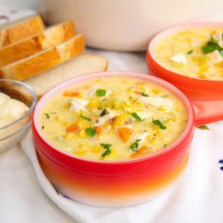 Homey chicken corn soup is savory & delicious. It is hearty, filling and only takes 10 minutes of prep time!!