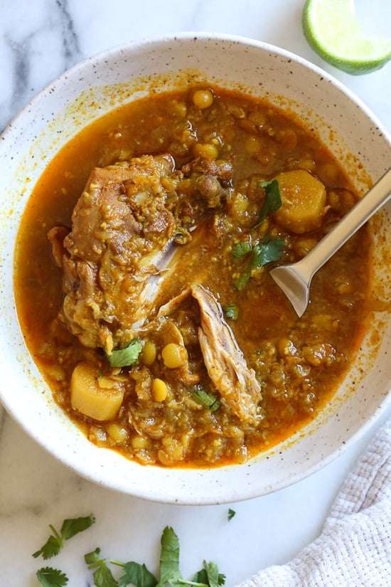 Chicken Dal Curry is a comforting Burmese stew made with yellow peas, chicken, ginger, turmeric, curry and spices.