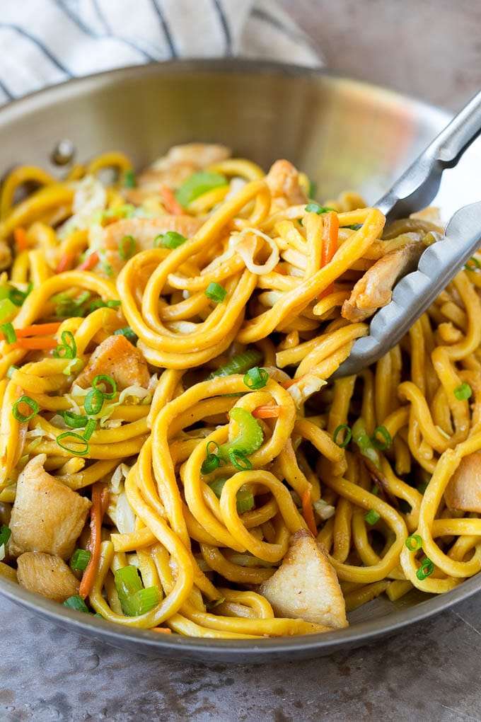 This chicken lo mein is sauteed chicken and vegetables tossed with egg noodles in a savory sauce. A remake of the take out favorite that tastes even better than the restaurant version!