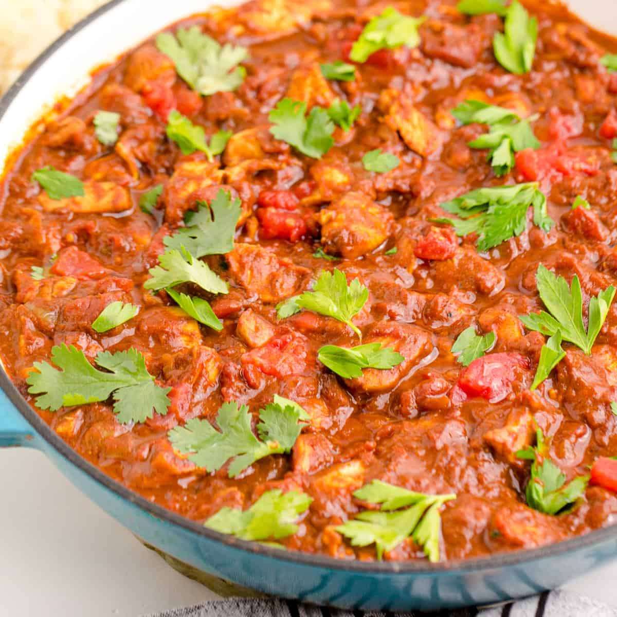Warm spices, coconut milk, and tender chunks of chicken combine to turn this spicy Chicken Madras Curry recipe into an easy weeknight dinner. Ready in under an hour!