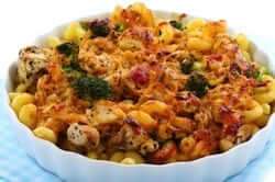 - Put pasta in baking dish. Pour chicken mixture over pasta. Toss.