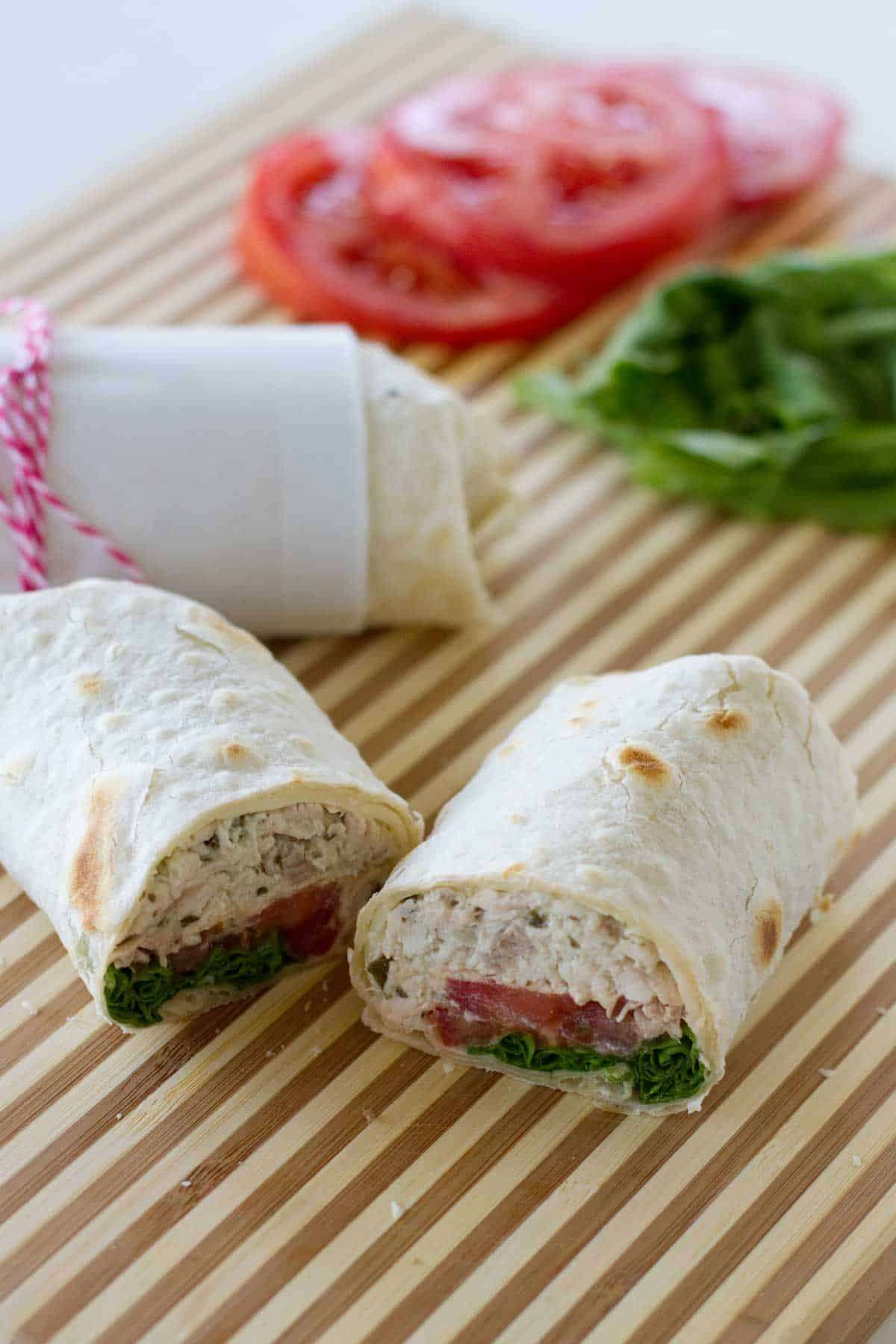 An easy lunch idea, these Chicken Pesto Wraps are delicious and quick. Made with shredded chicken, sour cream, pesto, cheese, and more, this wrap recipe is flavorful and perfect for any age.