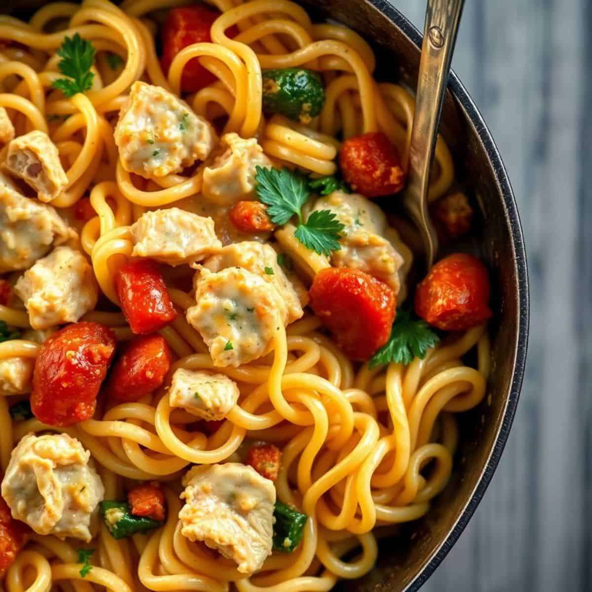 - Combine chicken and sauce: Once the noodles are cooked, return the cooked chicken to the skillet and stir to combine. Taste and adjust seasoning with salt and pepper as needed.