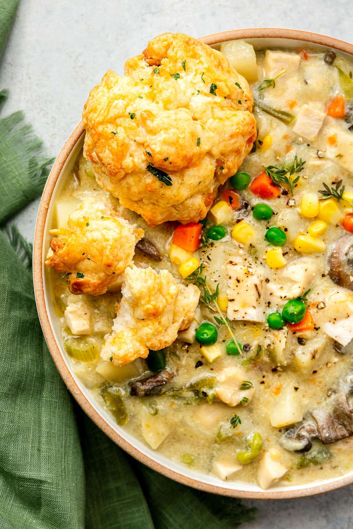 This hearty chicken pot pie soup tastes just like chicken pot pie, only as a hearty soup. It’s packed with protein and veggies in every bite!