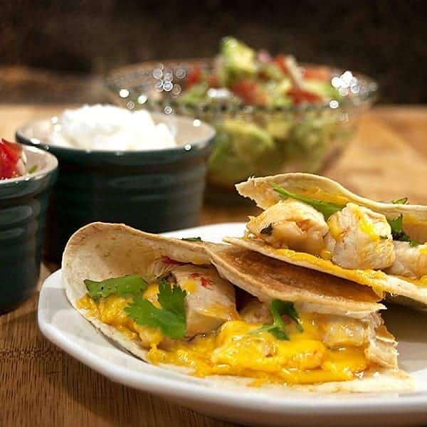 Healthy, low-fat chicken quesadillas with a fresh avocado salad.