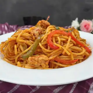 - Cook the spaghetti noodles according to the package instructions until al dente. Drain and set aside.