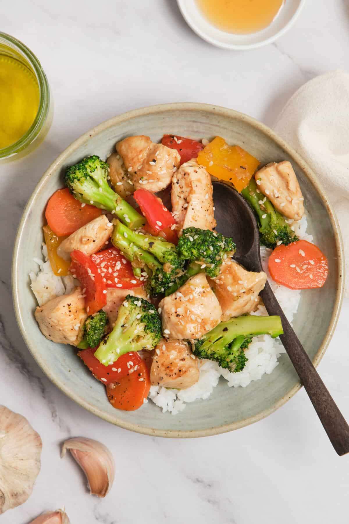- 1 lb boneless skinless chicken breast cut into 1-inch pieces