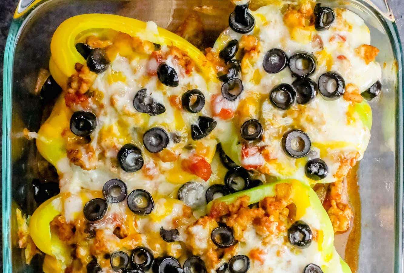 - Add taco filling into stuffed peppers (you can scoop and cook in the same pan you made taco meat in if it is oven safe, or use a baking sheet, casserole dish, or any oven safe pan).