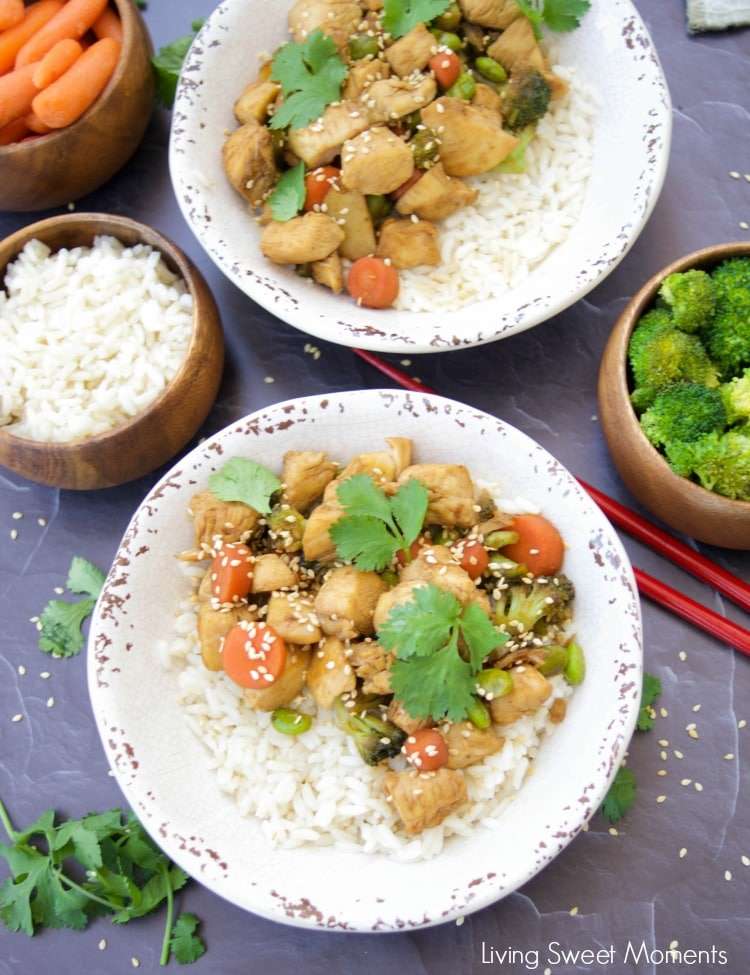 These amazing Chicken Teriyaki Rice Bowls are ready in 20 minutes or less. Enjoy a delicious and healthy weeknight dinner recipe. Made without cornstarch