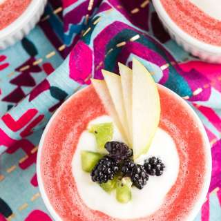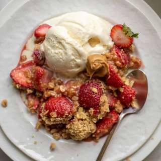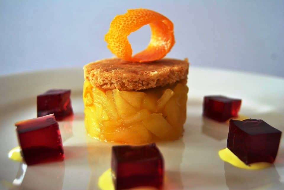 Chilled Apple and Orange Crumble with Fresh Strawberry Jelly and Custard