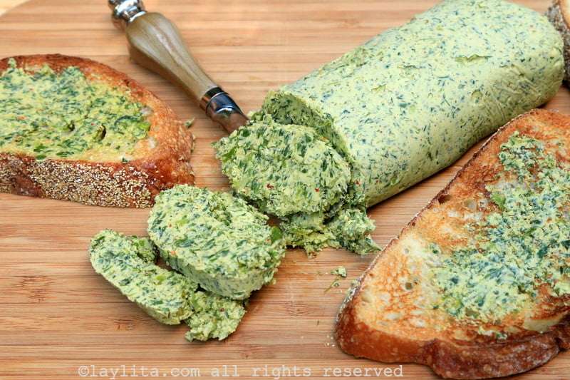 - Place all the ingredients except for the butter in a small food processor and pulse until the herbs are finely chopped.