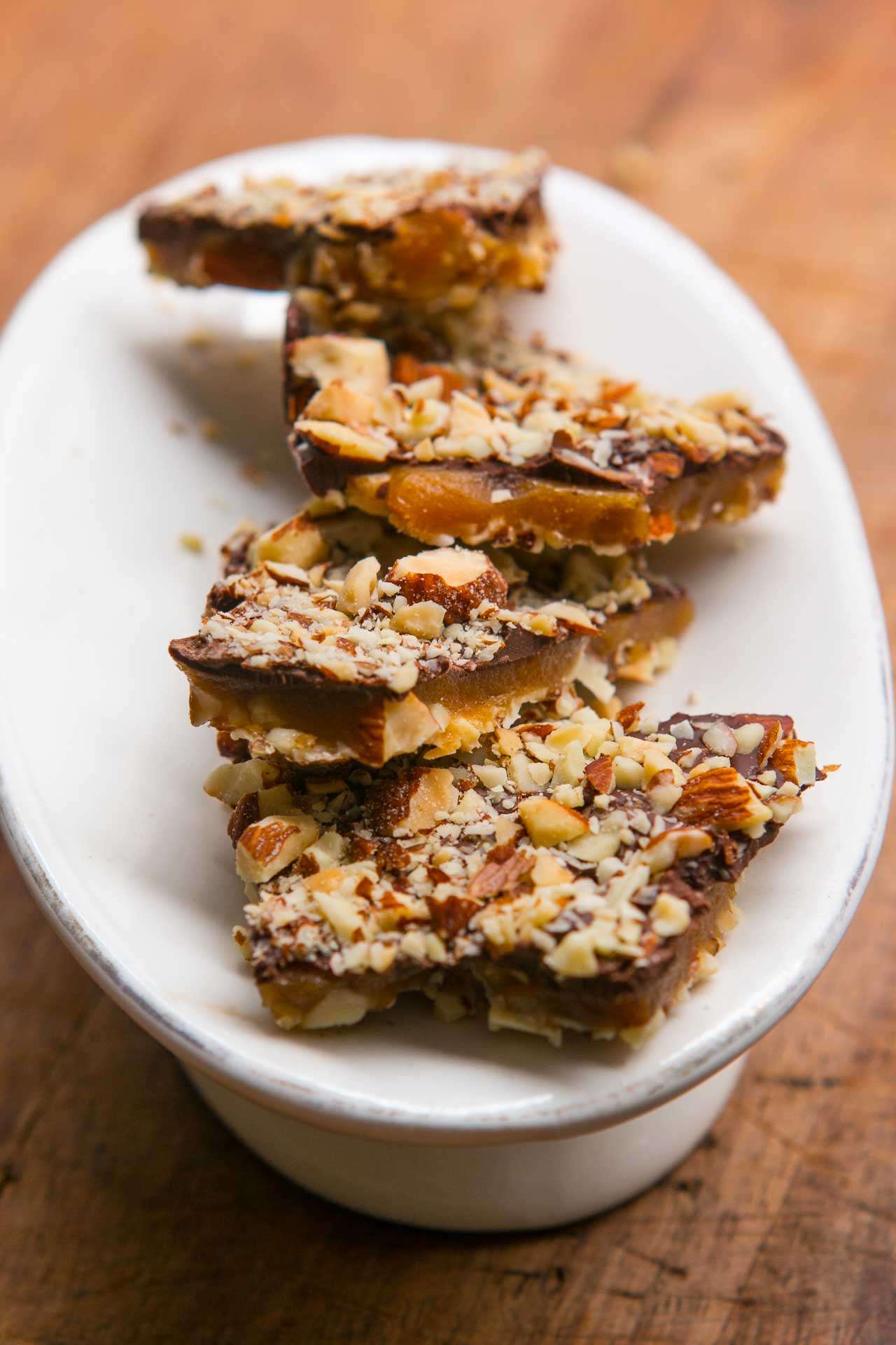 - Sprinkle the remaining nuts over the chocolate and gently press them in with your hands.