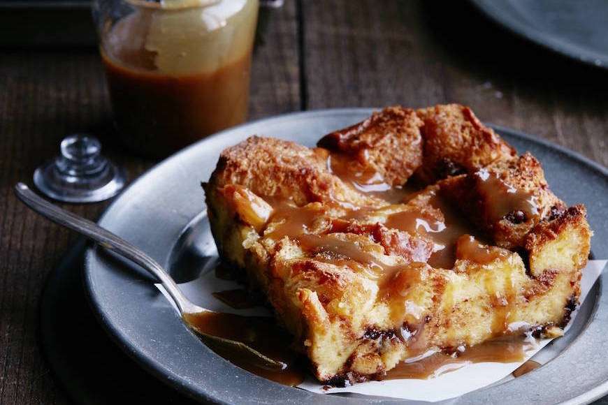It’s not the holiday season without some decadent breakfast, am I right? How about this Chocolate Chip Bread Pudding with a homemade Caramel Sauce drizzle for your Christmas morning breakfast?