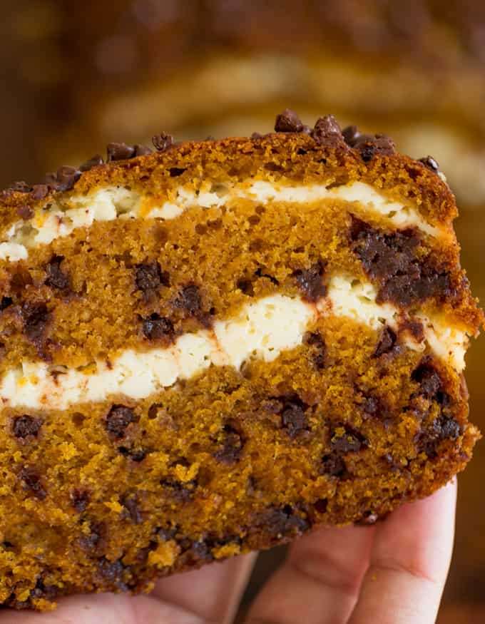 Chocolate Chip Pumpkin Cream Cheese Bread