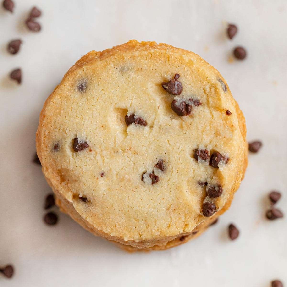 Chocolate Chip Shortbread Cookies are crumbly, buttery cookies with chocolate chunks in every bite. Easy classic shortbread recipe with only 4 ingredients!