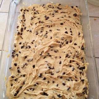 - On low speed, or by hand, mix in the flour mixture until it's mostly incorporated. Stir in the coconut, chopped chocolate and dried cranberries until completely combined. Scrape the cookie batter into the prepared pan and even it out. (Using a clean, damp hand is the best tool for doing this.)
