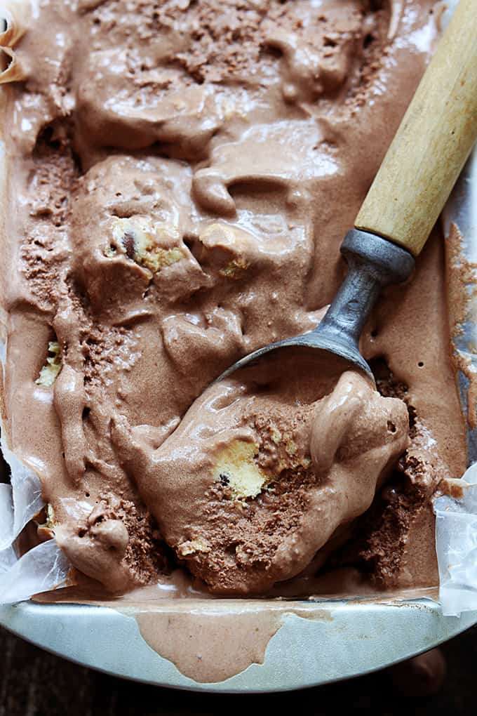 Creamy chocolate ice cream stuffed with chunks of edible (eggless) cookie dough! Dangerously easy and insanely yummy!