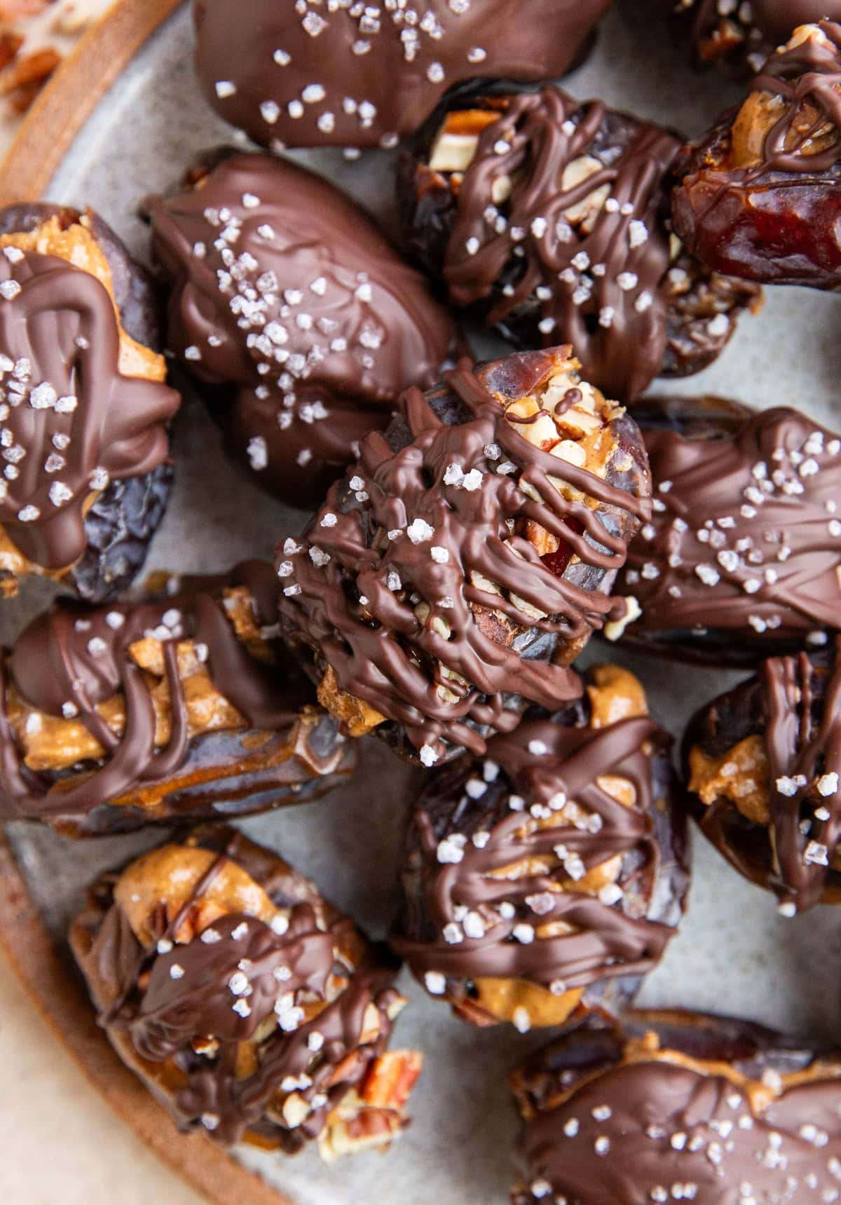 - If you’d like, sprinkle the dates with flaky sea salt while the chocolate is still melted.