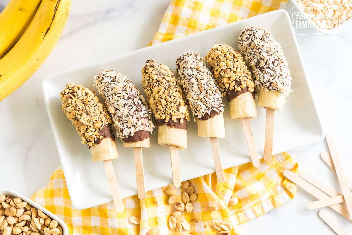 Using just 3 ingredients, make a delicious frozen treat with this Chocolate Covered Bananas recipe! Frozen bananas get dipped in chocolate and rolled in fun toppings.