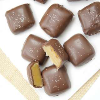 - Place a square of caramel on a fork, then dip into the melted chocolate, use the fork to turn it over a few times to make sure it's completely coated, and then use the fork to lift (do not stab) the caramel from the chocolate. Tap the fork on the side of the bowl a few times to shake off any excess chocolate, then transfer to a sheet of wax/parchment/foil to cool completely. Repeat with remaining caramels. (To speed up the cooling, you can line a dinner plate with foil and place dipped caramels on the foil, then place in the freezer for 2-3 minutes)