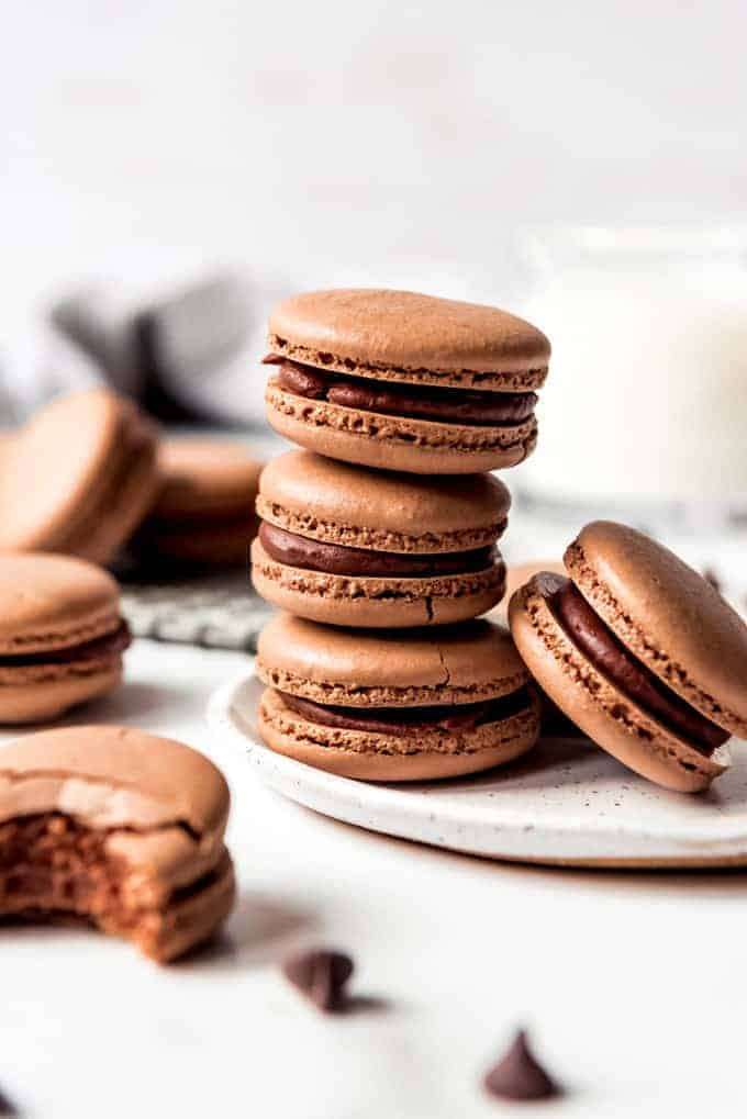 These indulgent Chocolate Macarons are filled with dark chocolate ganache and I promise they are easier to make than you would think! Don't be intimidated by this classic French dessert. Follow my tips for the best chocolate macarons that not only taste as good (if not better) than the ones from a high-end bakery, but also don't cost an arm and a leg!