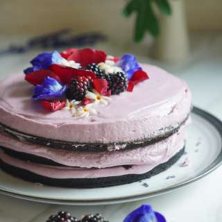 Chocolate Peanut Butter Cake (with Caramel Peanut Butter Nougat Filling and Chocolate French Buttercream Frosting)
