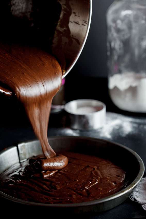 - Dissolve the peanut butter into the hot coffee and pour into the cake batter and mix well.