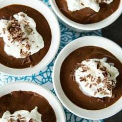 - Allow the pots de creme to cool completely, then cover with plastic wrap and refrigerate for at least 4 hours or up to 3 days. Let them sit at room temperature for 30 minutes before serving. Top with whipped cream and chocolate shavings, if desired.