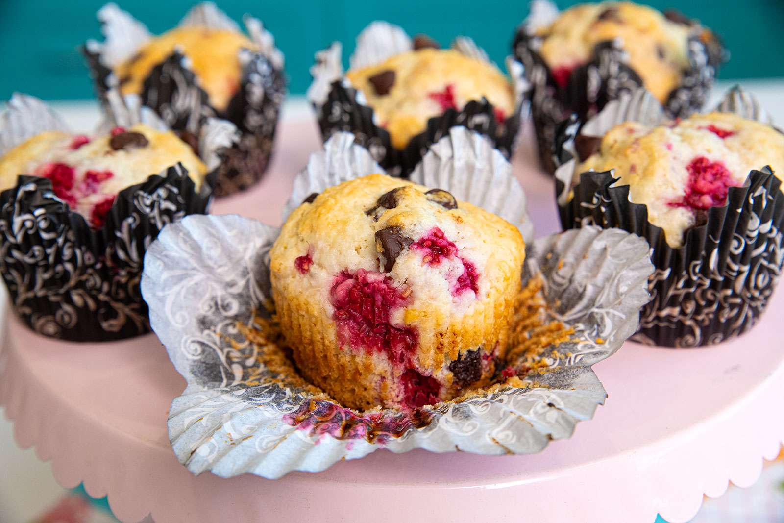 These decadent chocolate and raspberry muffins are the perfect flavor combination and make for a great breakfast or snack the whole family will love.