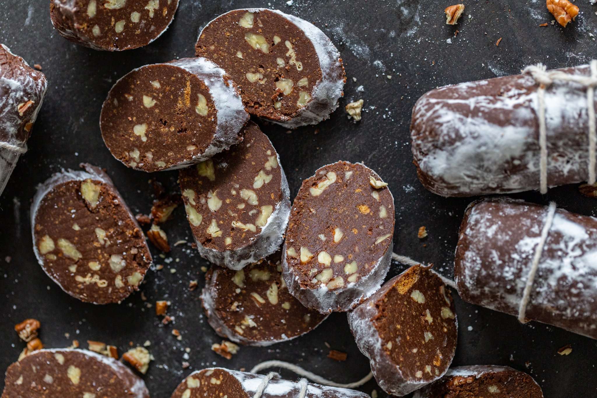 Chocolate Salami is one of the easiest and the most delicious desserts to prepare during the holidays. It requires no cooking at all -- just a few minutes of prepping and it stays fresh for months!