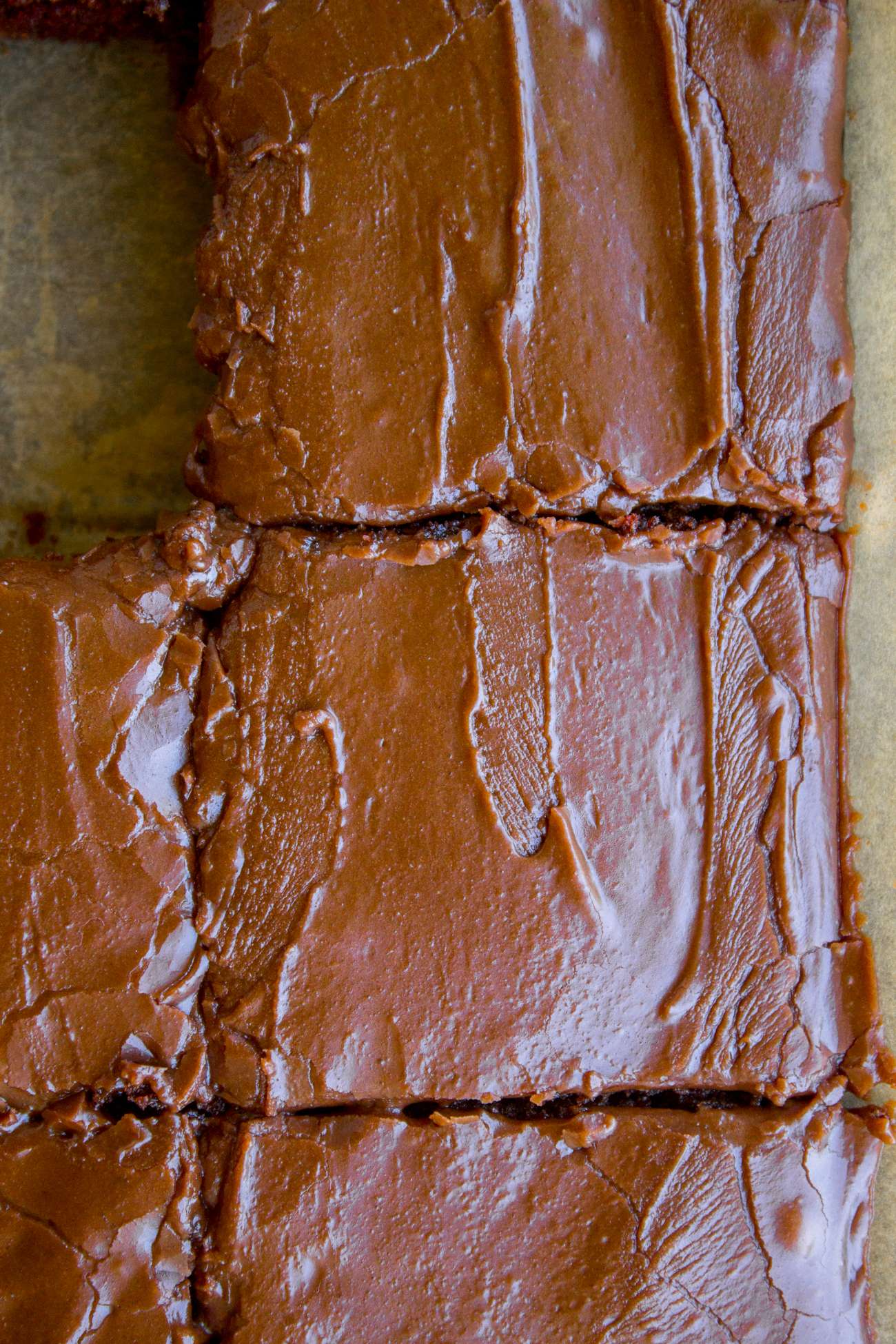 This Texas Sheet Cake recipe is THE ONE, you guys! As in, the only one you will ever need. Sour cream in the cake and the glaze, brown sugar, and extra cocoa make this the BEST chocolate sheet cake of your life!!