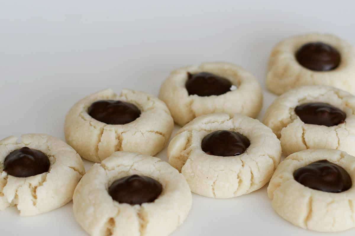 These Chocolate Thumbprints are soft vanilla cookies that are pressed down in the middle and filled with a rich chocolate ganache.