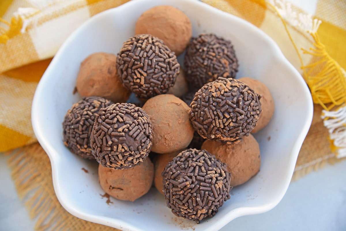 Easy Chocolate Truffles only use 4 ingredients, including sweetened condensed milk, to make a rich, decadent dessert. Roll them in chocolate sprinkles, powdered sugar or cocoa for the the finished touch!