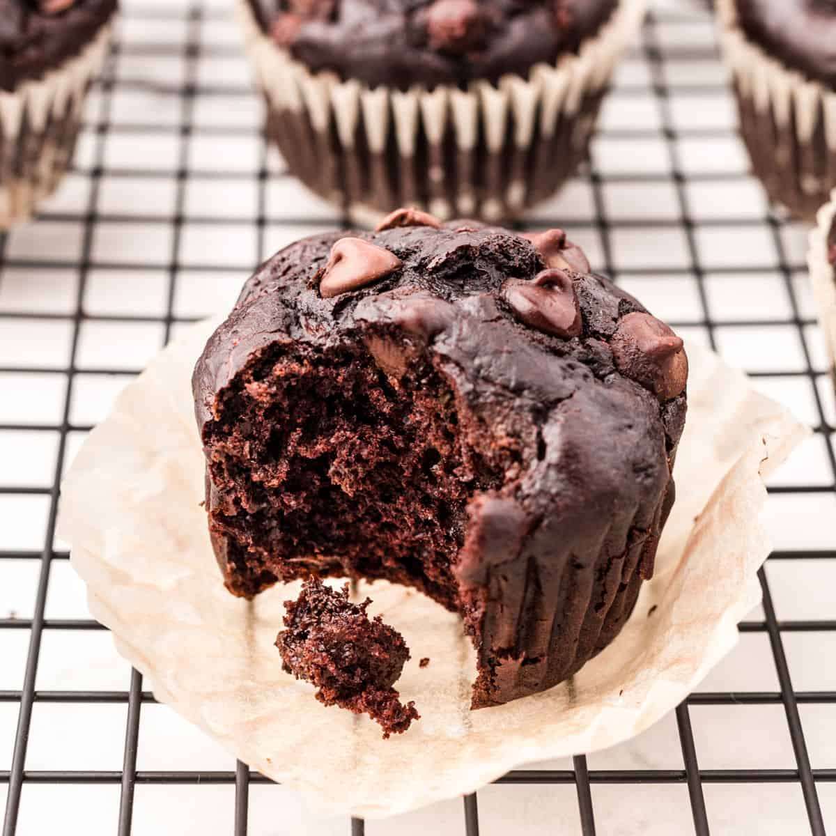 Rich and fudgy Chocolate Zucchini Muffins with double the chocolate! Freezer friendly instructions too!