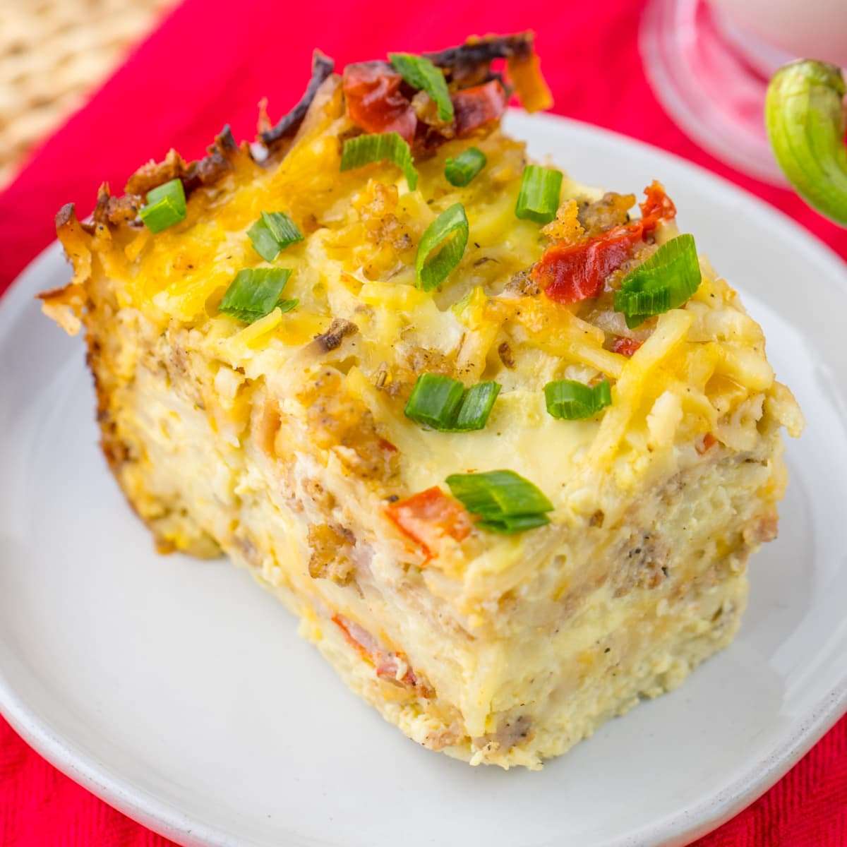 This Christmas Breakfast Casserole is loaded with flavor and made in the Crock-Pot. With the perfect combination of potatoes, cheese, sausage, eggs, peppers, and onions, it makes a delicious Holiday breakfast or any morning or the year!