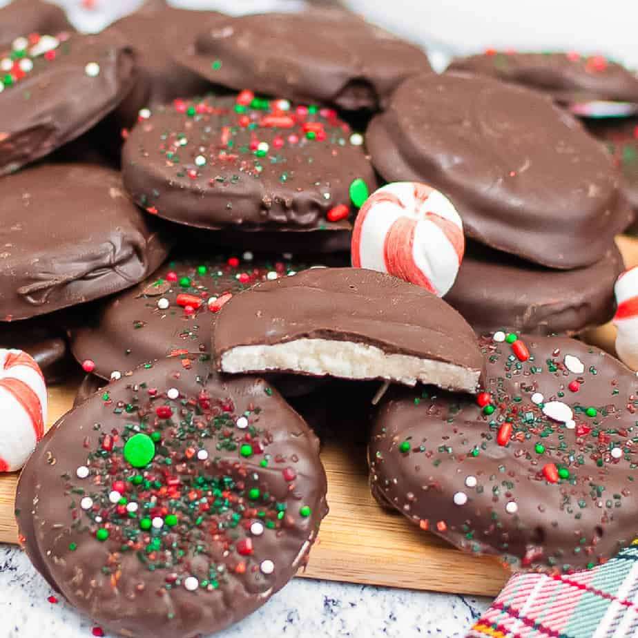 These homemade peppermint patties made a deliciously soft and creamy chocolate mint treat that is perfect for Christmas cookie trays. Finish these soft and sweet peppermint treats with holiday sprinkles.