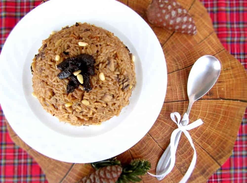 Christmas Rice Recipe With Pancetta, Prunes, And Pine Nuts