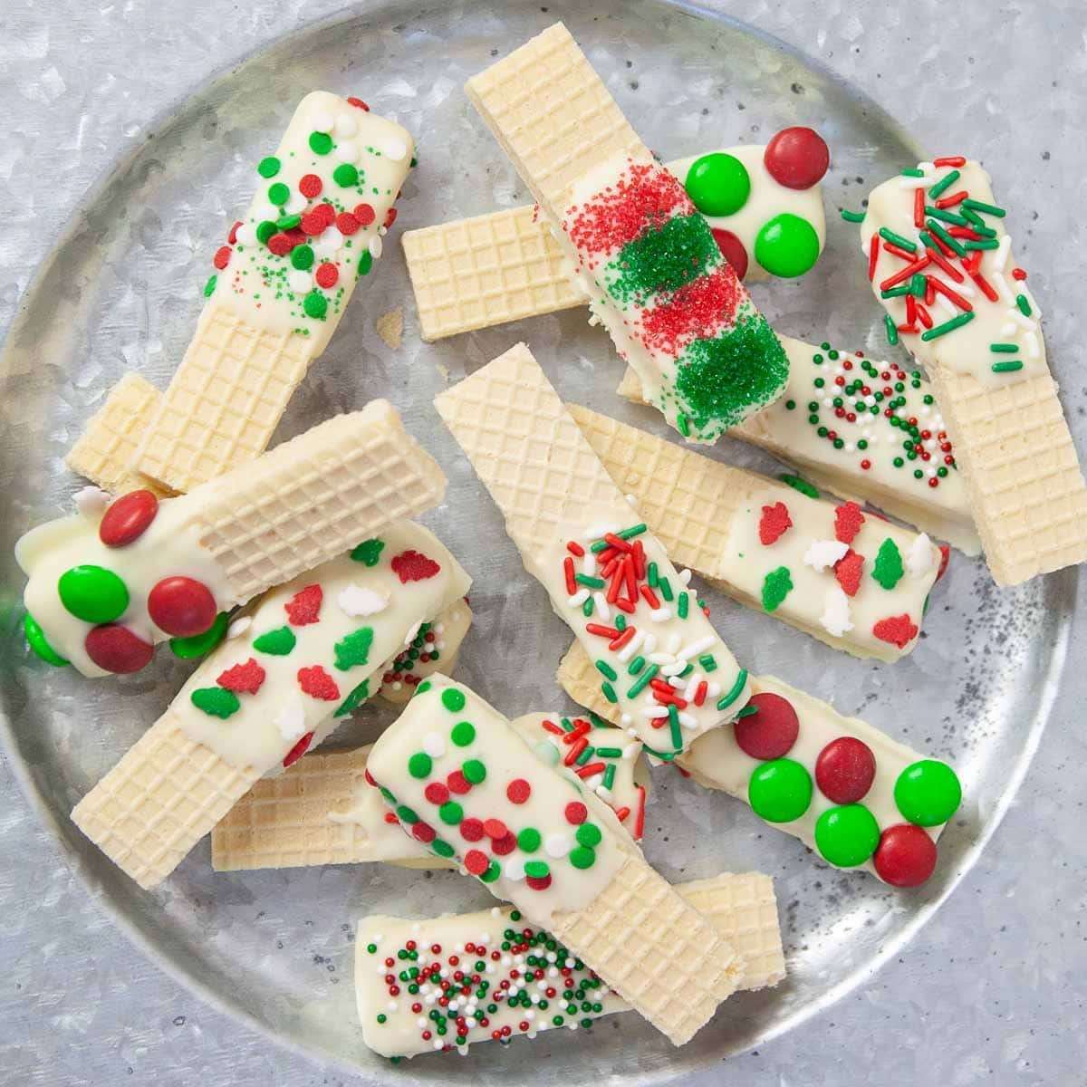 Festive White Chocolate Dipped Sugar Wafers are perfect for gifting, potlucks, or a fun Christmas activity with the kids.