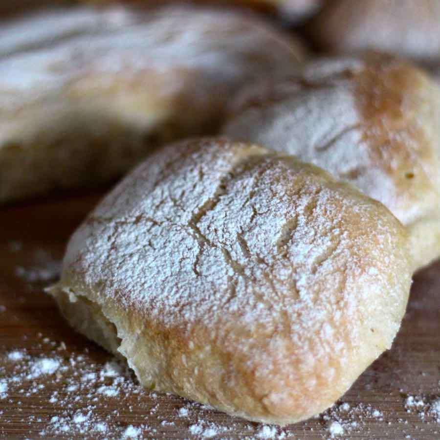 La ciabatta o chapata es un pan italiano crujiente tradicional con miga ligera; es conocido en todo el mundo como acompañamiento de platos italianos, así como para sándwiches.
