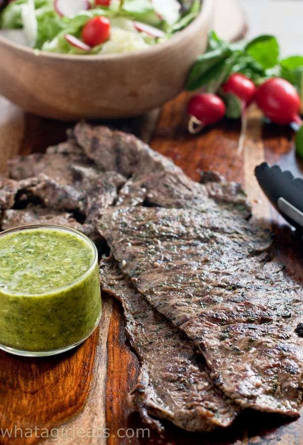 - Cut meat against the grain into thin slices with reserved Cilantro-Garlic Sauce.