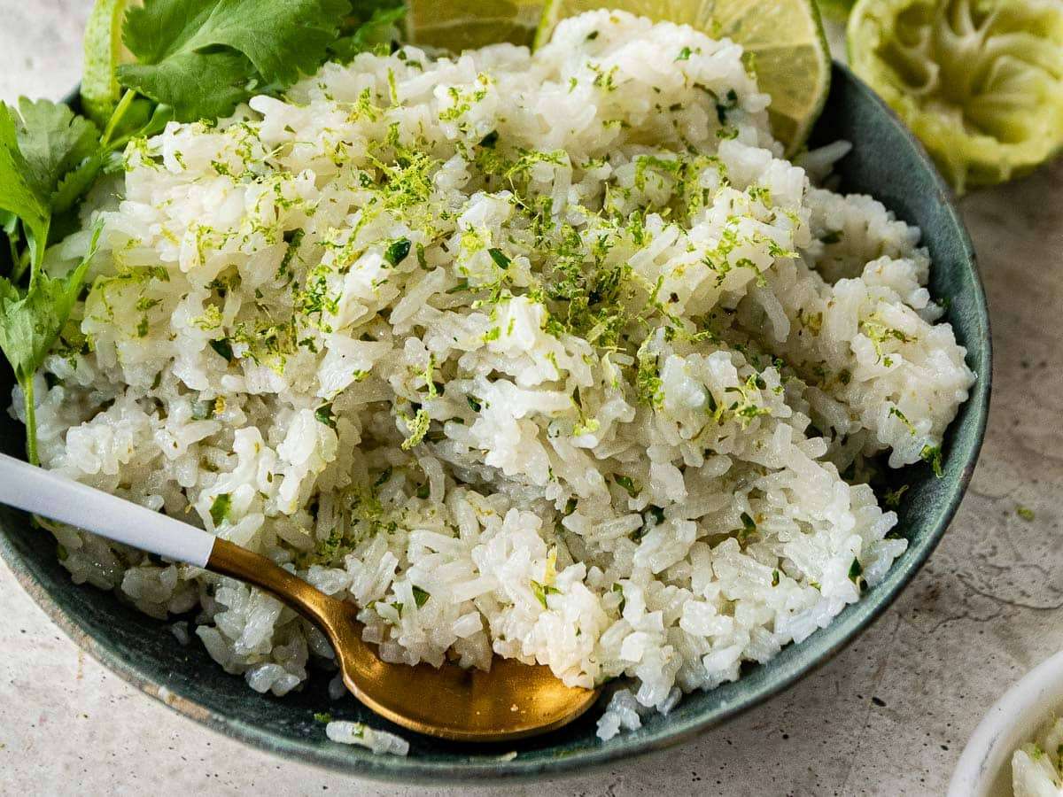 - Stir in lime zest, lime juice, and cilantro to the cooked rice just before serving.