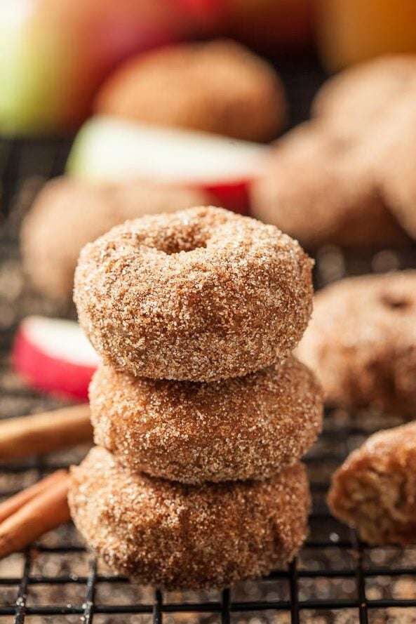 These Cinnamon Apple Baked Donuts are bursting with all the season's goodness. Fresh, crisp apples and warm, autumn spices like cinnamon and nutmeg make the most delicious, cakey donuts perfect for breakfast or dessert.