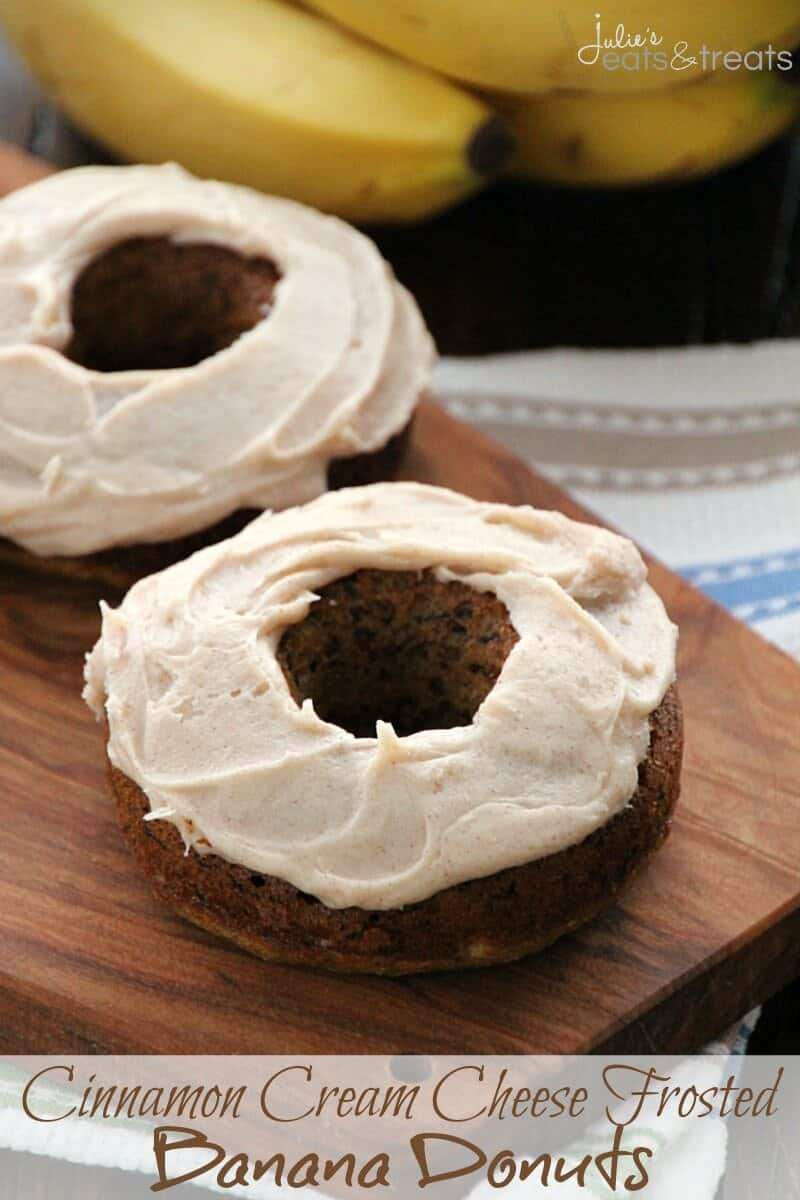 Cinnamon Cream Cheese Frosted Banana Donuts ~ Delicious, Easy, Moist Baked Banana Donuts Topped with Cream Cheese Frosting Loaded with Cinnamon!