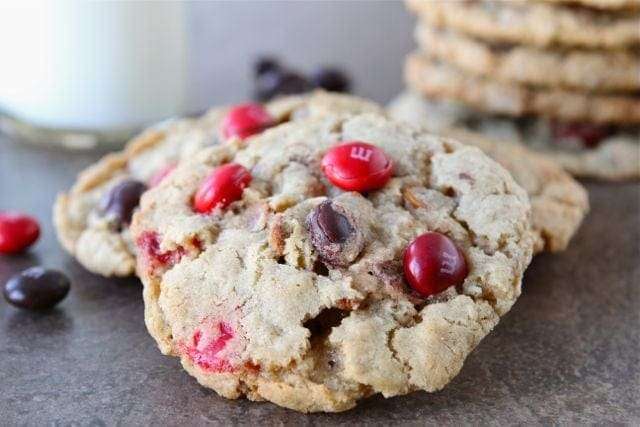 These oatmeal cookies have cinnamon, cinnamon chips, and Cinnamon M&M's. Cinnamon lovers will go crazy for these oatmeal cookies.