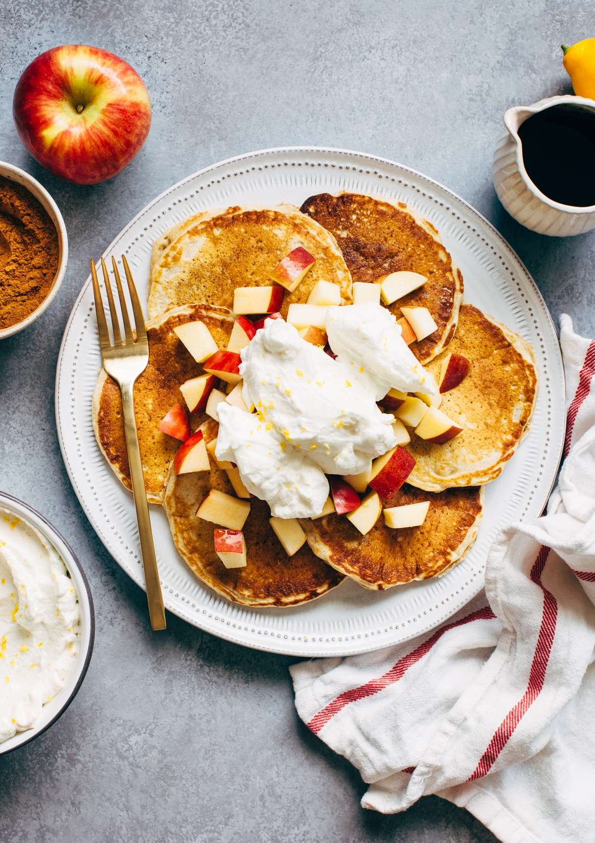 Cinnamon Pancakes with Apples and Meyer Lemon Whipped Cream
