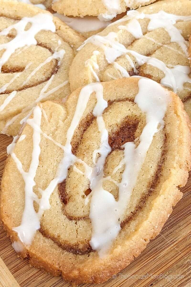 These delicious Cinnamon Roll Cookies are filled with buttery cinnamon sugar and topped with a sweet glaze — just like the bakery classic, in cookie form!