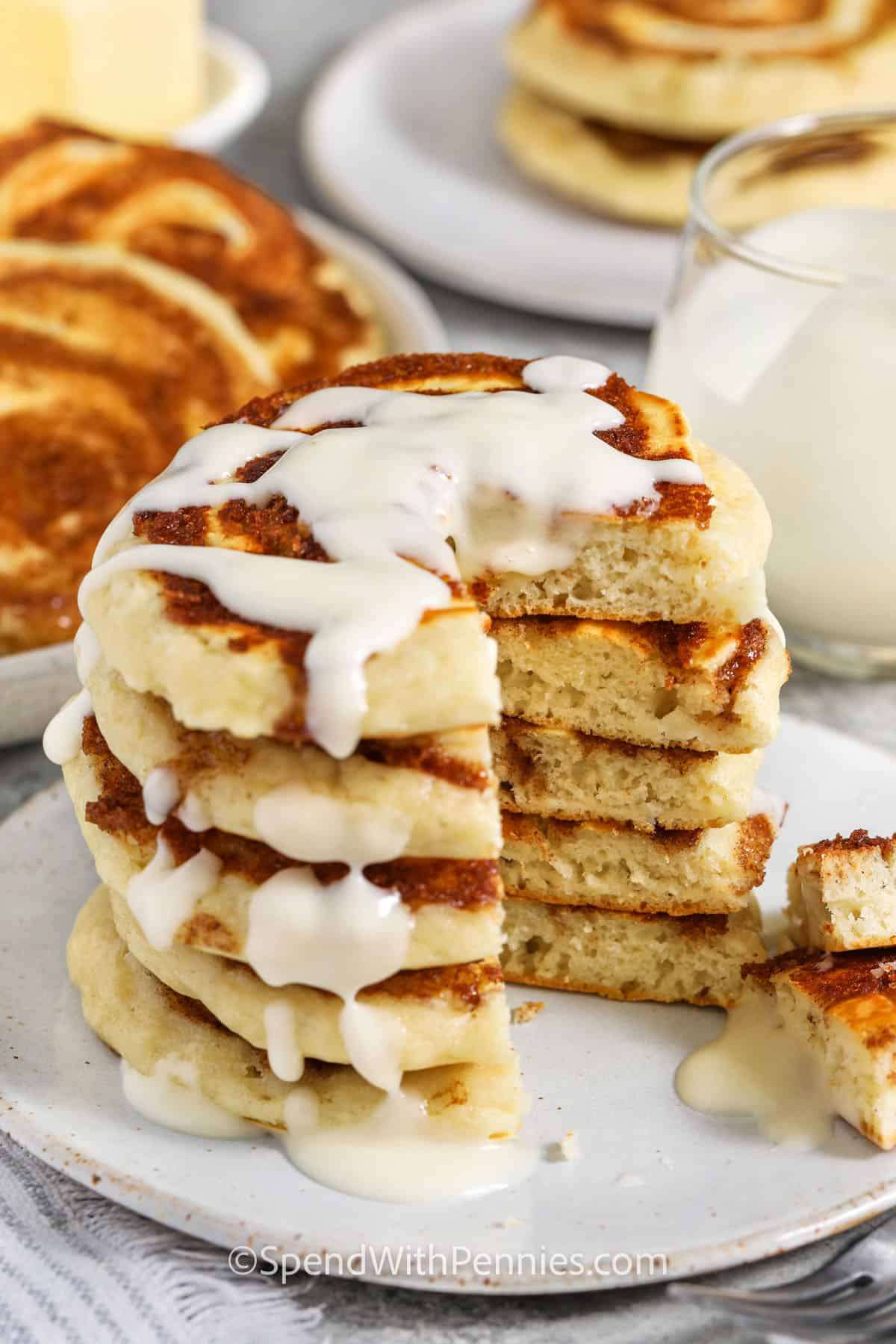 These Cinnamon Roll Pancakes bring together the best of both worlds.