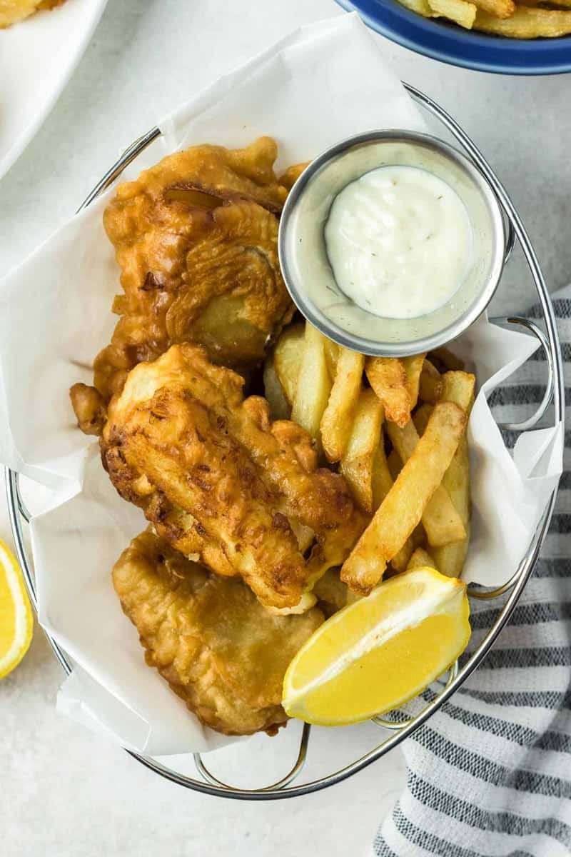Crispy beer battered fish and homemade chips with the perfect crunch! This restaurant-quality recipe creates golden, flaky fish with a light, airy coating.